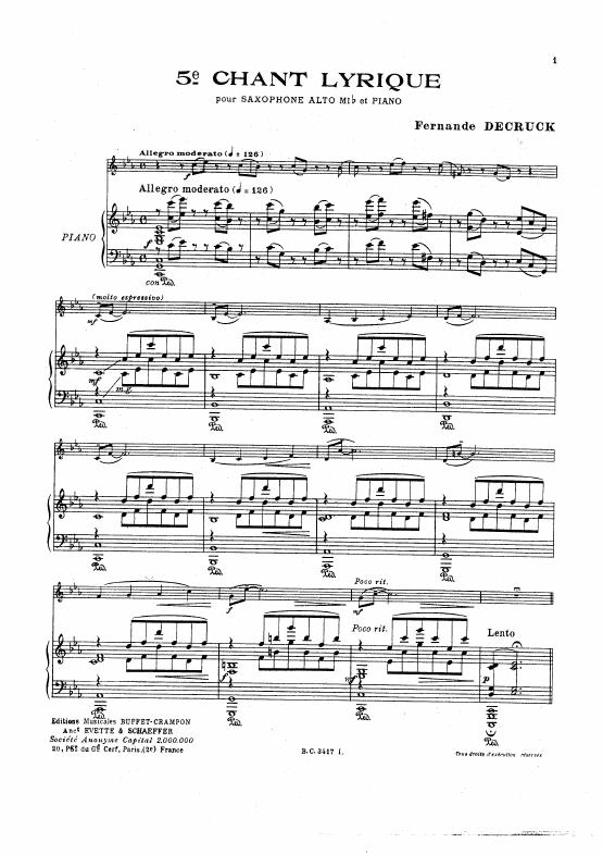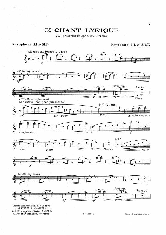 5e Chant lyrique pour saxophone alto mi bémol avec accompagnement piano