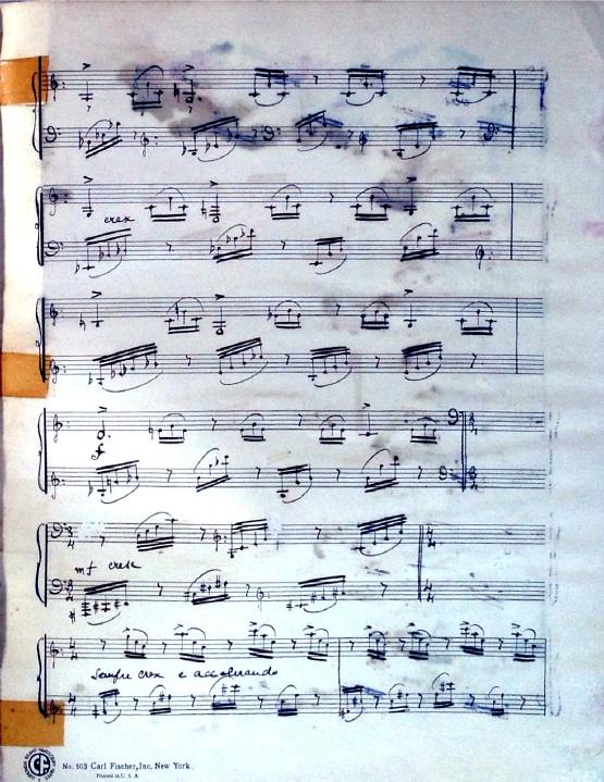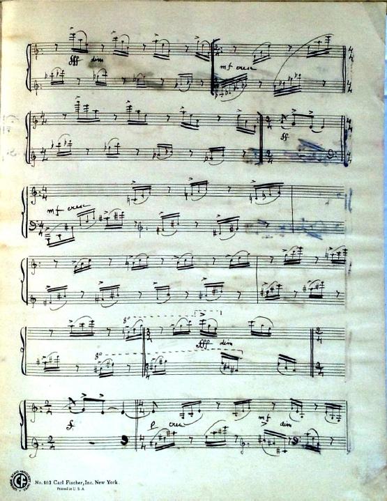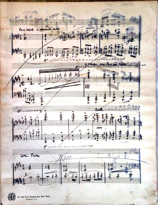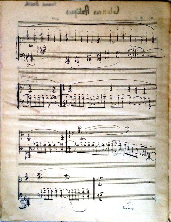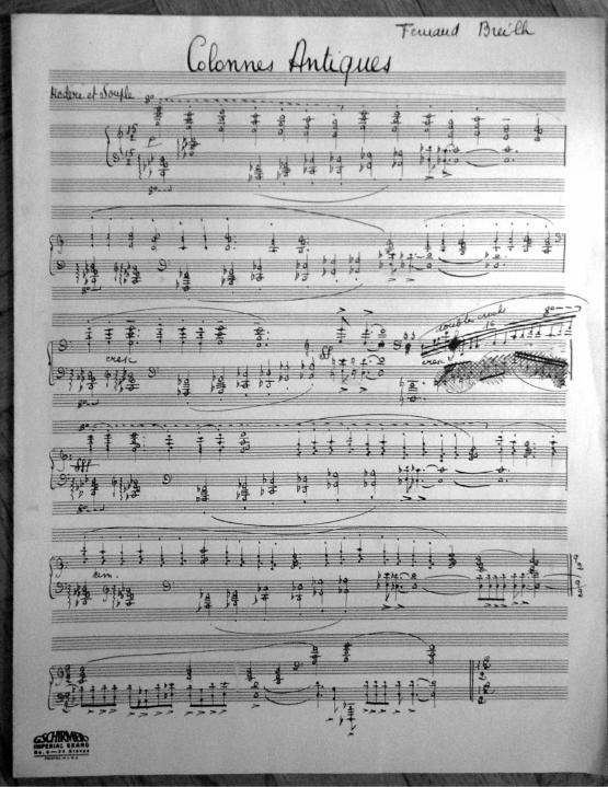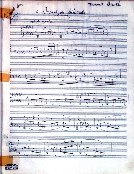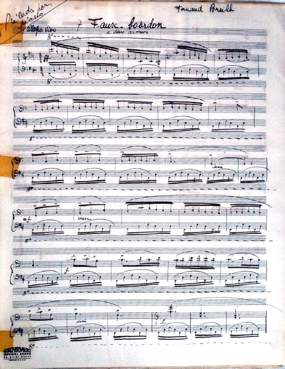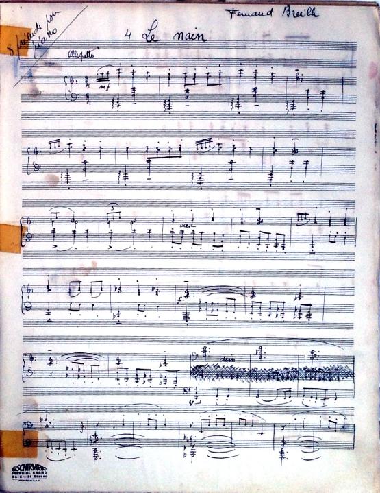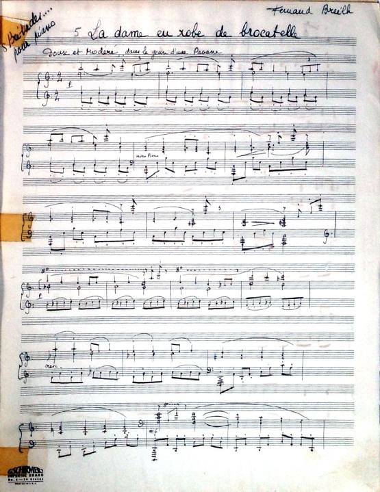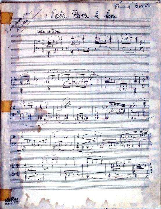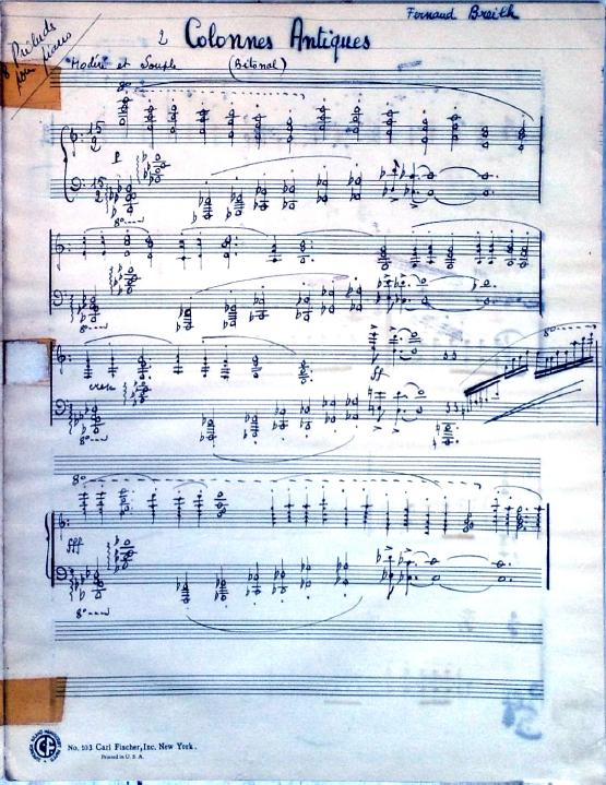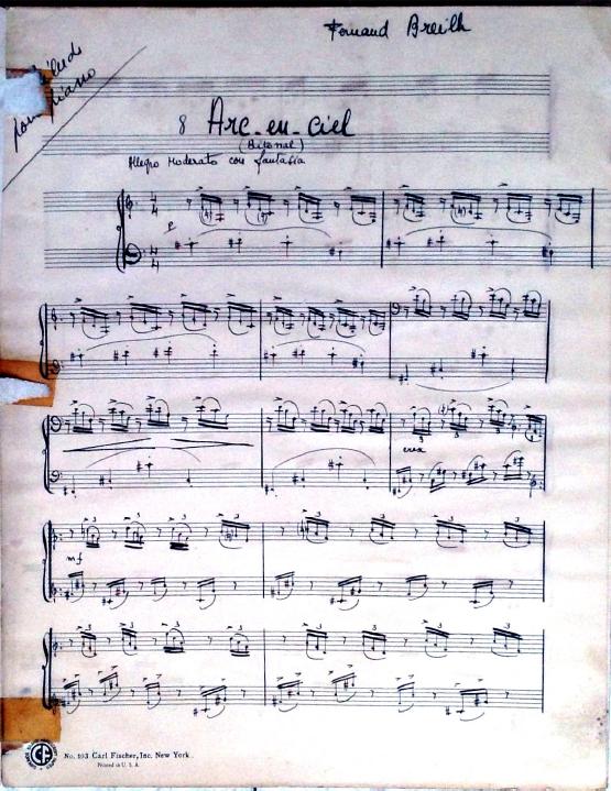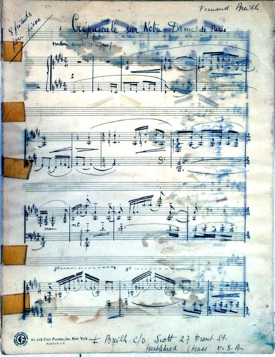 These 8 preludes feature descriptive titles. Two of the preludes are bitonal and many feature unusual time signatures. Although the date is unknown, this was definitely written during Decruck's time in Marblehead (1947-1948). It's signed "Fernand Breilh".