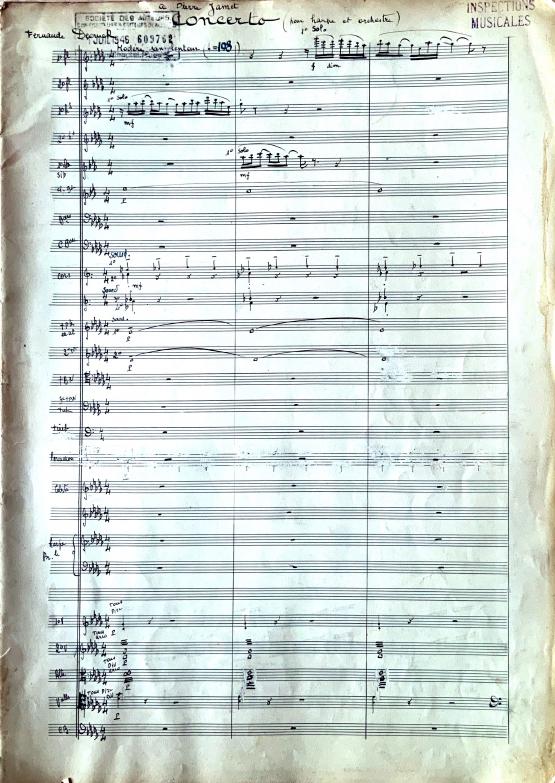 The Concerto pour harpe et orchestre was recorded in January 2022 by Chen-Yu Huang (harp) and the Jackson Symphony Orchestra under the baton of Matthew Aubin. It will be released in the summer of 2022 on Claves Records. A preview of the manuscript score can be seen below.