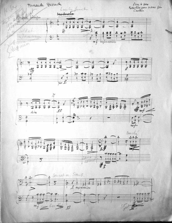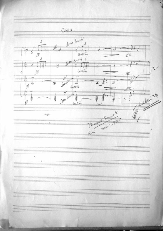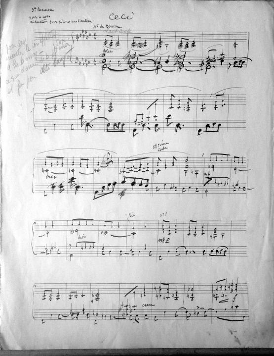 This is an arrangement of Deux berceuses (originally for horn quartet). It is important to note that the published and recorded version is not in the order specified by the composer. The movement titles above are correct. A reduced score, full score and poem (which corresponds to the movements), along with notes by the composer on how to adapt for saxophone quartet can be previewed below. The work was adapted for saxophone quartet and recorded by Quatuor Ellipsos. This work is available through Éditions Billaudot and its distributors. www.billaudot.com