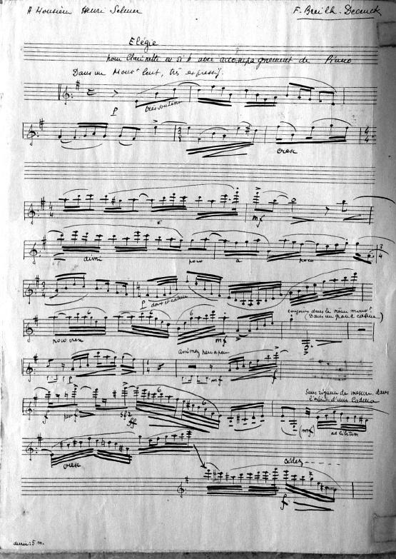 Elégie (opus 42) pour clarinette en si bémol avec accompagnement piano