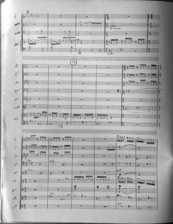 The first movement, marked Allegro moderato, introduces the work with majestic themes and prominent solo trumpet passages. The second movement, Andante, showcases extended harpsichord solos that interact with wind instruments, particularly the saxophone, adding a distinct timbral contrast. The third movement, Allegro vivo, is a dynamic and virtuosic tour de force, featuring brisk, syncopated harpsichord passages that highlight the instrument’s agility.
