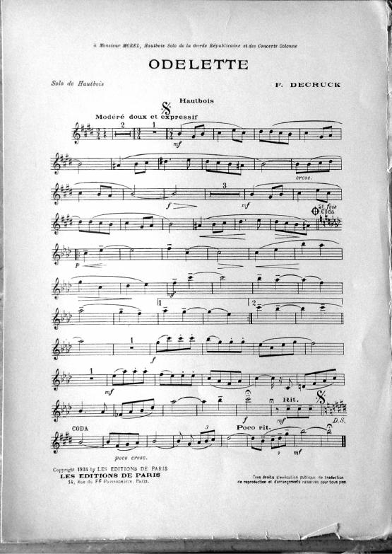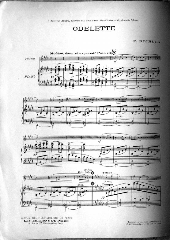 Dédié à Monsieur Morel, hautbois solo de la Garde Républicaine et des Concerts Colonne