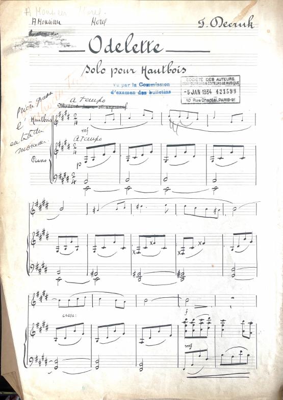 Odelette pour hautbois avec accompagnement piano ou harpe