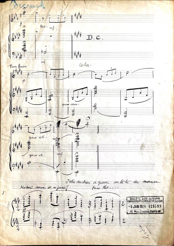 SACEM stamp says January 5, 1934 but the copyright on the manuscript is listed as 1933.