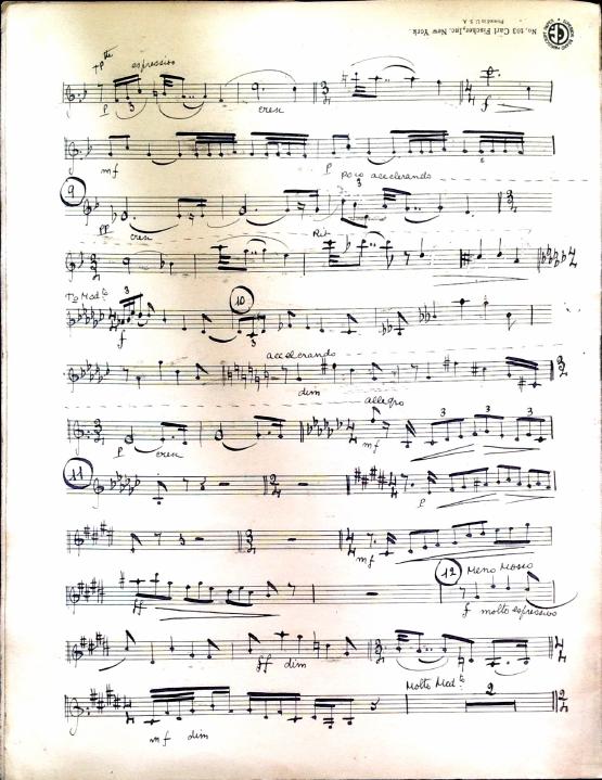 The manuscript collection contains a full score, solo horn part, solo trumpet part, 3rd version for trumpet and piano (both piano and trumpet parts), 4th definitive version for trumpet and piano (both piano and trumpet parts) and a first version of the piano score.
