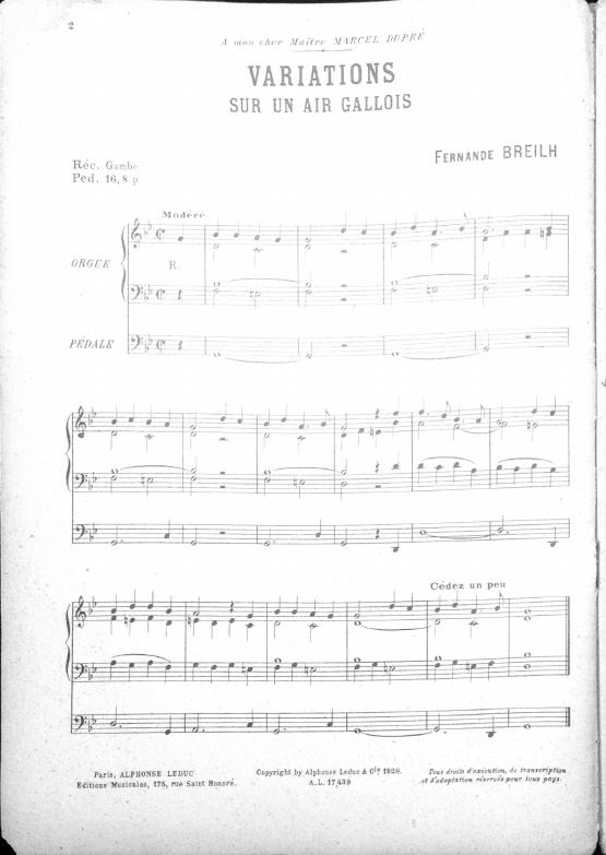 Theme and 12 variations originally published Alphonse Leduc. One of Decruck's first published compositions under her maiden name, Breilh.